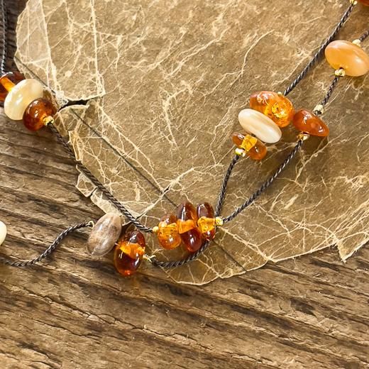 鼈甲のような樹脂とにた方にの水牛角のビーズで作りました。