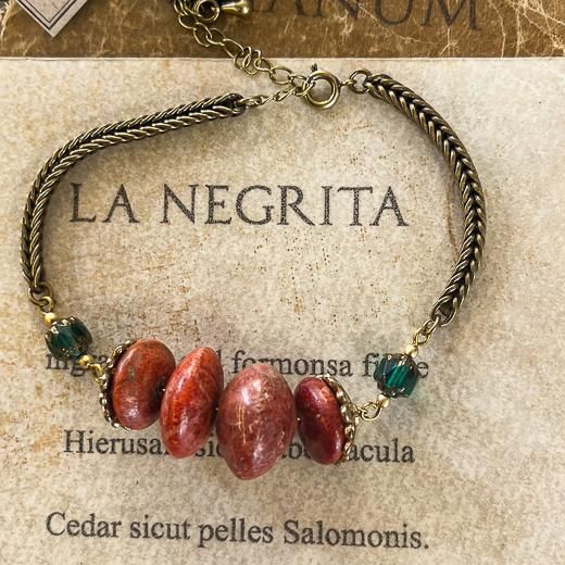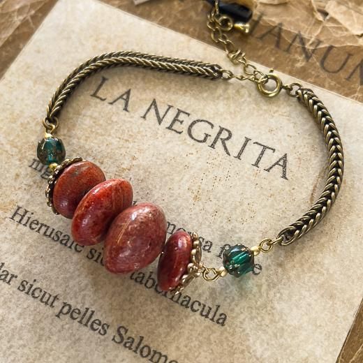 多孔質のスポンジのようなサンゴのビーズ。その中でも樹脂をコーティングしたものをアップルサンゴと言います。