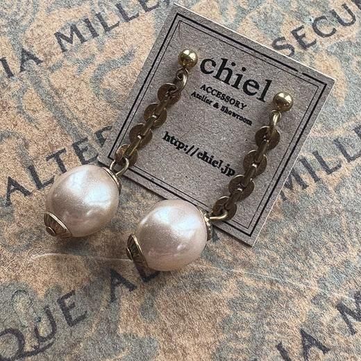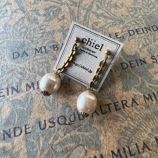 銭形チェーンとバロックパールの耳飾り。