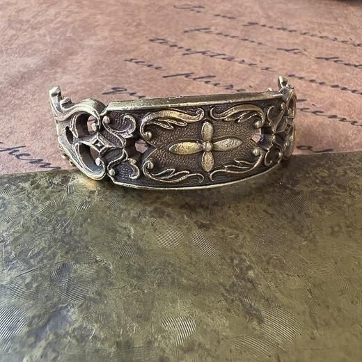 チェーンやパーツを繋ぎ合わせて幅広の腕輪が作れます。