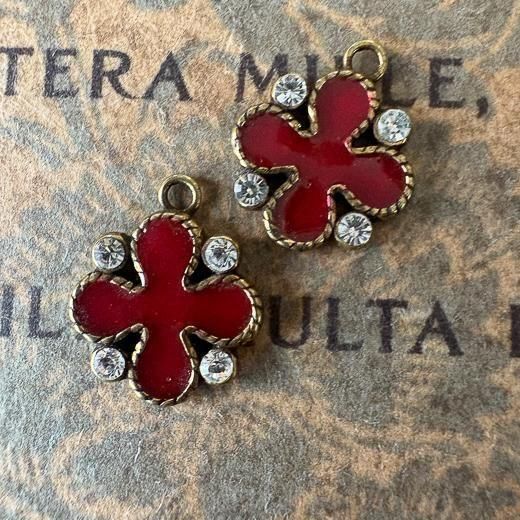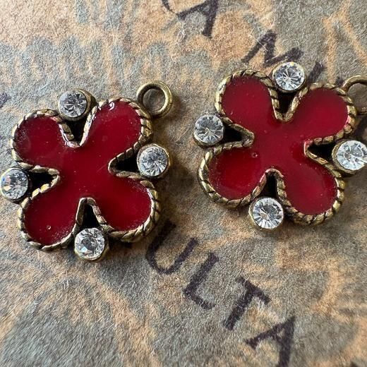 クローバーのチャームに樹脂を流し込みクリスタルをセットしています。